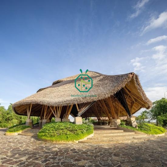 합성 짚 지붕 판매합니다 인공 초가지붕은 주거 공간이나 해변 리조트 호텔에 아름다운 열대 분위기를 연출하는 데 완벽한 대안입니다. 해변 리조트 호텔, 정원 테라스 또는 산속 목조 가옥 등 어디에 설치하든 편안하고 유지 관리가 간편한 이국적인 열대 분위기를 조성하는 데 가장 아름답고 실용적인 선택입니다. 인조 짚 지붕재는 해양 국가에서 널리 사용되며, 주로 개인 주택이나 리조트 호텔 프로젝트에서 열대 분위기를 연출하는 데 활용됩니다. 믿을 수 있는 품질의 인조 짚 제품은 좋은 투자입니다. 천연 짚 지붕보다 가격이 높을 수 있지만, 자연스러운 외관을 가진 인조 짚 타일을 얻을 수 있고, 정기적인 수리나 교체 필요성이 훨씬 적어 10년 이상 사용할 수 있습니다.