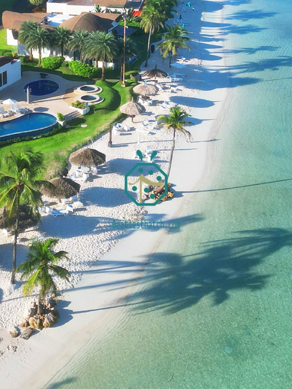 천연 짚에 비해 합성 소재는 리조트 및 공공 장소에 더 안전한 지붕 솔루션을 제공합니다.