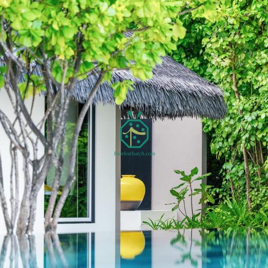 우리의 이국적인 초가지붕 디자인 판매 중인 제품은 방풍 및 방수 기능이 뛰어나며, 뜨거운 공기가 빠져나가 니파 오두막 아래 시원하고 그늘진 공간을 제공합니다. 니파 오두막이 있다면, 아마도 마당에서 중요한 요소일 것입니다. 만약 새로운 니파 오두막을 지어야 한다면, 초가지붕 구조물 또는 초가지붕 수리 저희의 인조 짚 기와를 지붕 덮개로 사용하거나 손상된 목조 구조물을 교체하고 니파 오두막을 다시 짚으로 덮을 수도 있습니다. 가짜 짚지붕 재료.