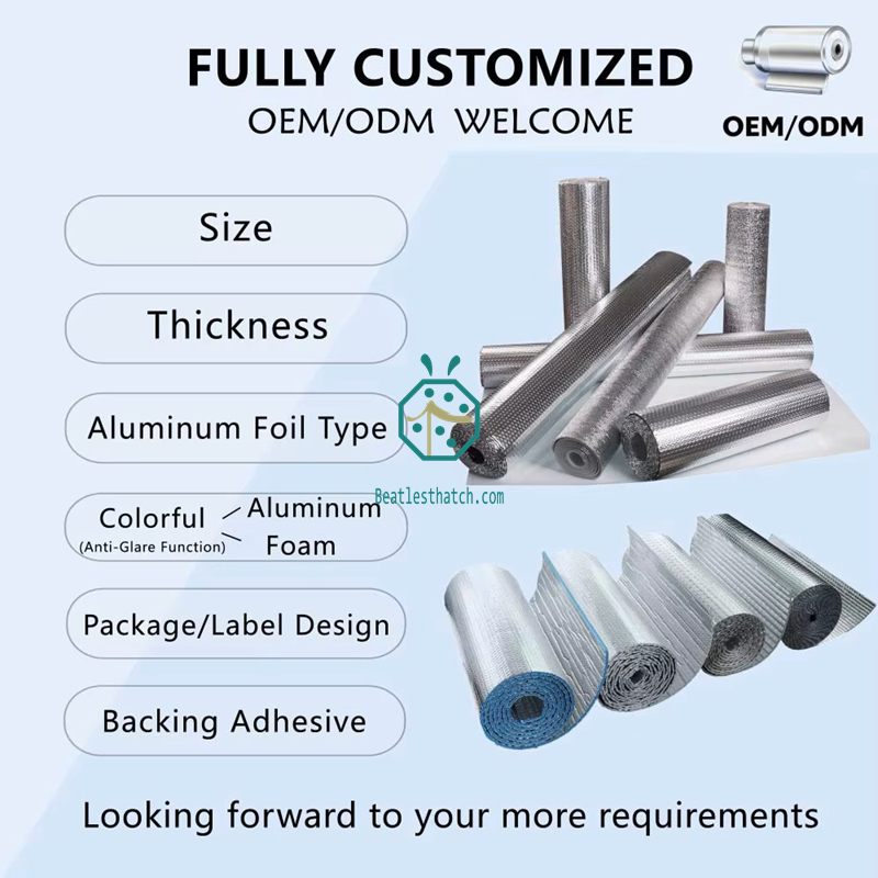 AL + 버블 + EPE 폼 + 버블 + AL 구조로 이루어진 이 제품은 단일층 소재에 비해 탁월한 단열 성능을 제공합니다.