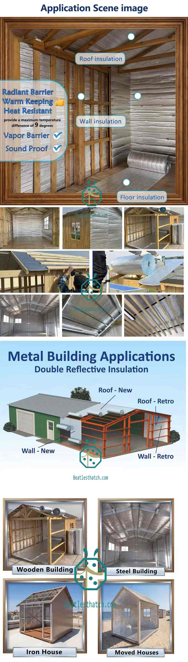 합성 초가지붕은 "섬 분위기"를 선사하지만, 단열 성능이 부족한 경우가 많습니다. 당사의 알루미늄 버블 폼 포일을 초가지붕 타일 바로 아래에 설치하면 복사열을 차단하여 게스트 빌라를 훨씬 시원하게 유지할 수 있습니다.