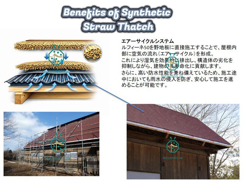 당사의 공식 일본 대리점은 야마가타현에서 문화재 복원 프로젝트를 성공적으로 완료했습니다. 전통 건축물의 썩고 떨어진 천연 초가지붕을 당사의 프리미엄 제품으로 교체하는 작업이었습니다. 합성 짚 지붕 타일 .